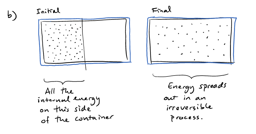 Since the process is irreversible, the total change in entropy (for the whole system) must be positive. This eliminates option (D) and (E) in the multiple choice question.![]()