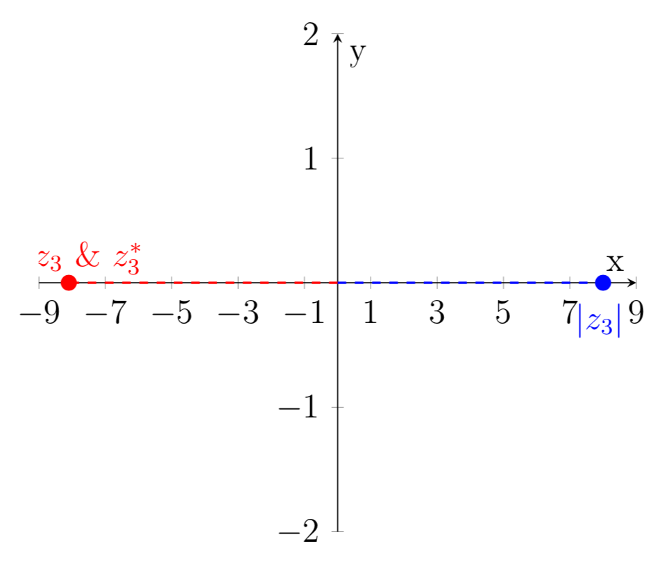 by the norm. For \(z_3\), which is a pure real number, the norm is positive