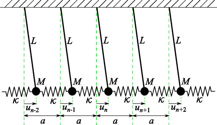 lie on the \(x\)-axis with a spacing \(a\). Assume that motion is